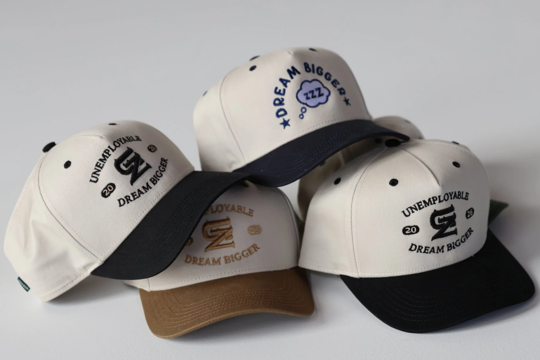 Elevate your everyday look with the Unemployable “Dream Bigger” Snapback—designed for bold thinkers and builders. This structured five-panel cap features a mid-profile fit with refined dart detailing on the front panel, giving it a clean, modern shape that holds its form all day.